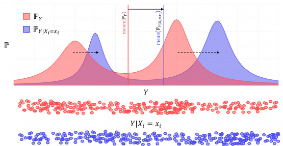 Fig. 3. Schematic representation of the optimal transport methodology concept for evaluating the influence of a single input in determining the probability distribution of a single output.